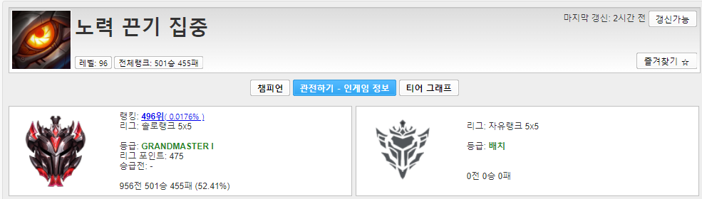 2012년부터 최근까지 제 리그오브레전드 솔랭은 끝났습니다.