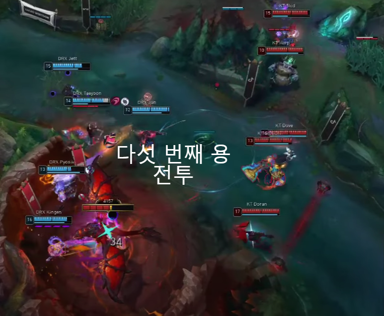다섯 번쨰 용에서 누가 용에게 기본 공격을 맞았어야 했고, 용에서 추가적인 전투가 이루어진다면, 종료 후 다음 용 전투 시간을 포함한 5분~6분 간 어떤 운영을 해야됐는지 냉정하게 판단했어야 됐는데요.