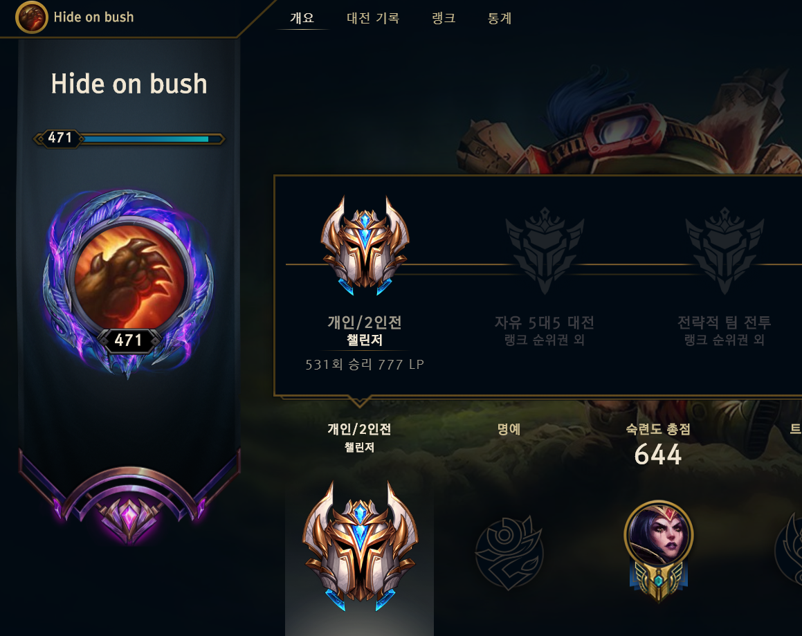 솔로랭크 챌린저 1000점대의 900~1000점대의 올라운더 포지션 페이커가 솔로랭크 980점부터 솔로랭크 777점까지 솔로랭크 리그포인트가 일시적으로 하락했습니다.